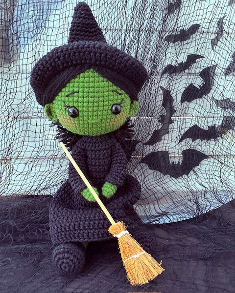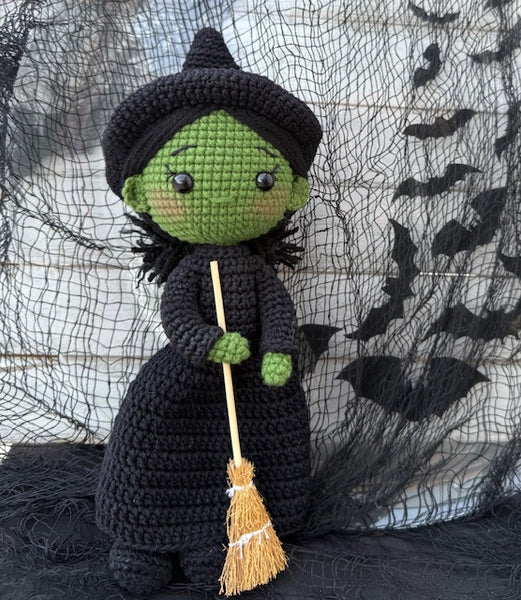 Lovingly crocheted with 100% cotton premium imported yarn and meticulous attention to detail, she’s made to last through countless adventures and cozy nights. Her expressive features, black gown, and mystical aura make her a standout piece for collectors, gift-givers, and little ones who believe in a bit of magic. This Crochet Green Witch has spellbinding charm in every stitch.